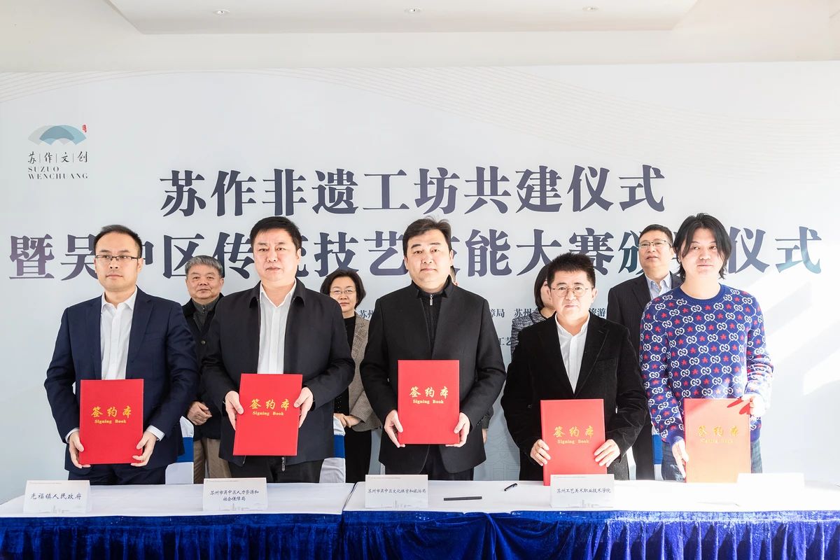 同时还携手苏州工艺美术职业技术学院,签约多名玉雕大师作为实训导师对青年手艺人开展培训指导,充分发挥苏作非遗工坊在非遗传承、人才培养、产业振兴、富民增收等方面的叠加效应,初步形成区域性文化产业要素集群,把乡土人才资源转化为推进光福镇文化产业振兴发展的“动力源”。