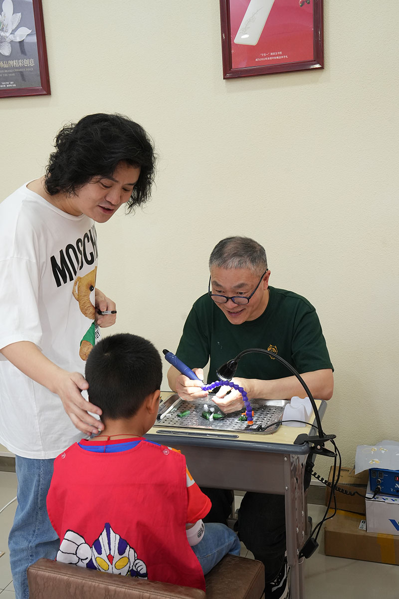 品牌方还从苏州玉雕厂调来了拥有30多年经验的玉雕师傅,现场展示苏州玉雕工艺,让大家近距离感受非遗魅力。当看到玉雕师傅吸引了很多小朋友的围观时,“鱼叔”非常欣慰,并说非遗传承就是要从小培养兴趣。
